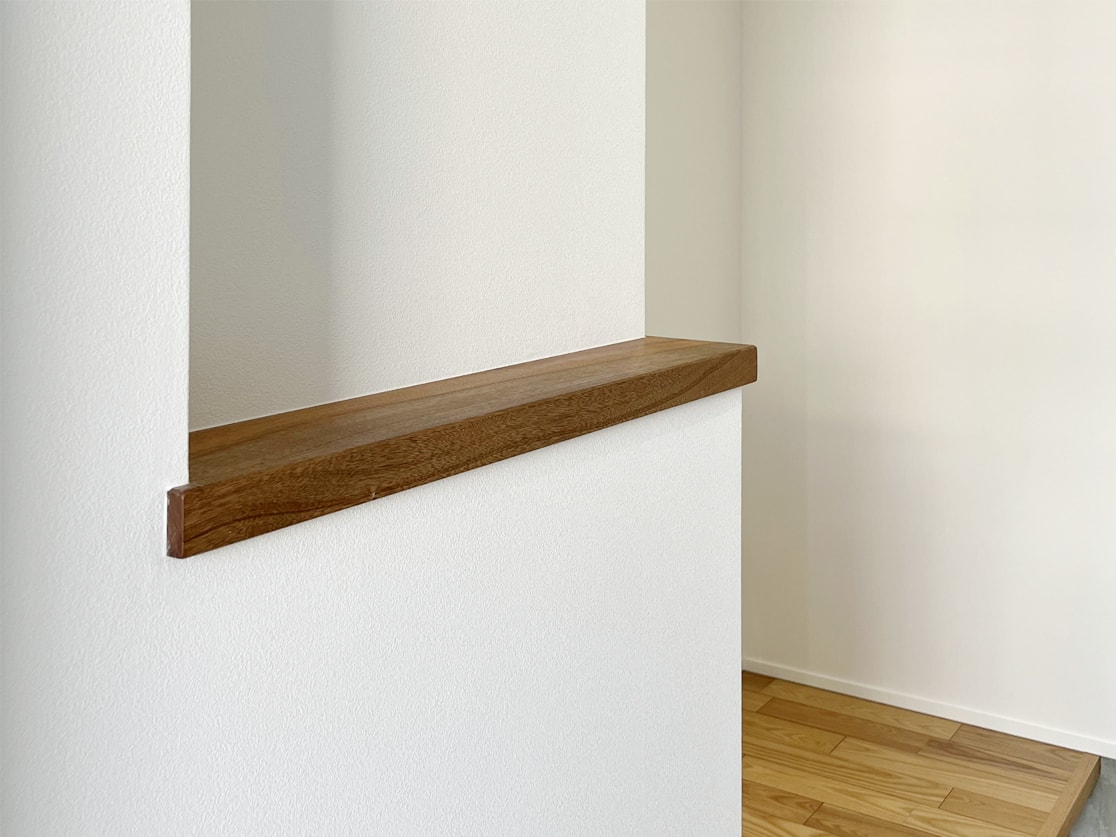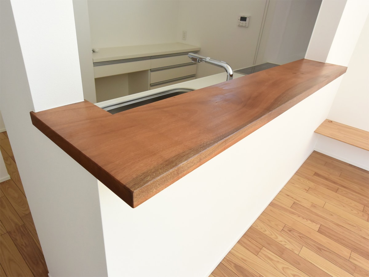 キッチンカウンター,欄間敷居,玄関ニッチ膳板に転用