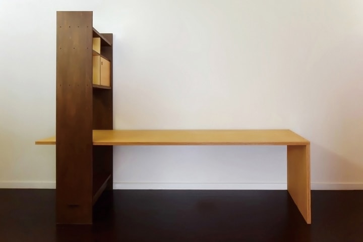 棚板が自由にカタチを展開する、棚ともテーブルとも言える家具です。